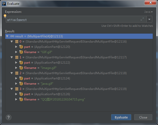 @PostMapping("upload") public ResultModel<List<AttachmentVo>> upload(MultipartFile[] images, @RequestParam("applyId") String applyId) {