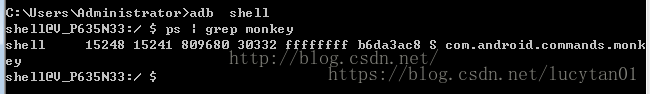 b. 在PC上adb shell 进入Android系统,通过执行monkey {+命令参数} 来进行Monkey 测试