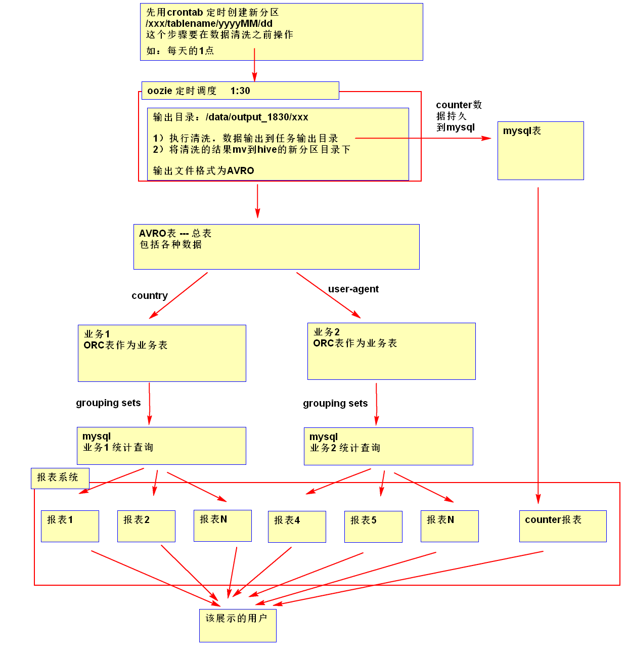 7)使用hive进行多维度的统计将结果存储到mysql中并使用报表系统进行展示;