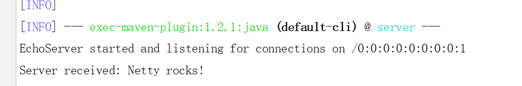 所以这里简单,server模块里用exec:java -Dexec.args="1",即监听端口1,不过在这之前请cd server到server目录下执行这个命令