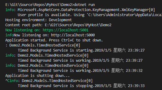 在 ASP.NET Core 中,后台任务作为托管服务实现.托管服务是一个类,而且必须实现 IHostedService 接口,该接口定义了两个方法: