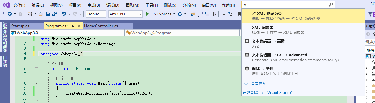 运行结果如下:界面简洁,启动速度明显比VS2017要快的多。