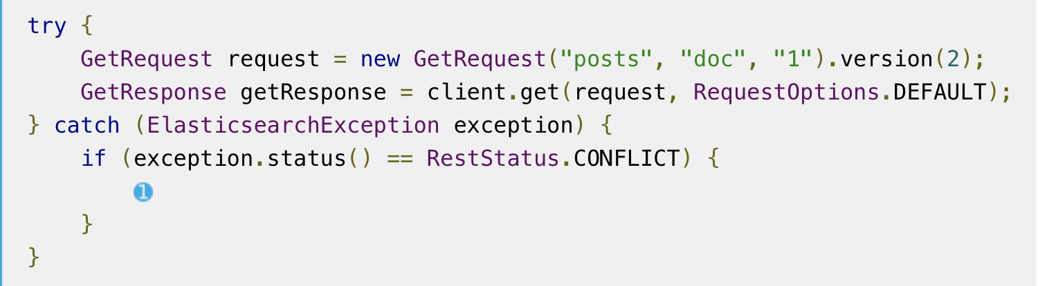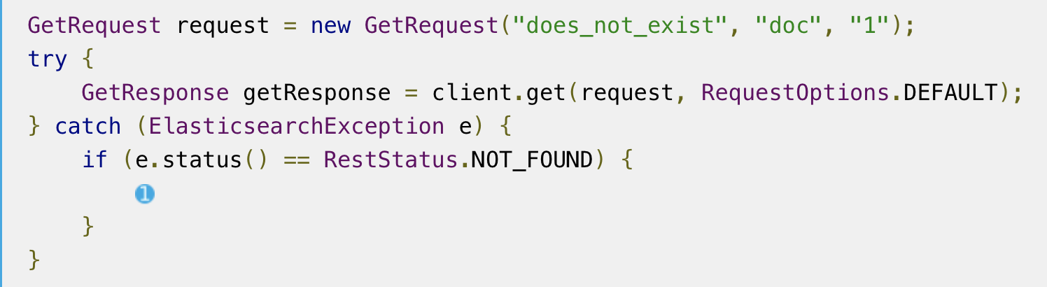 当索引不存在,或者指定的文档的版本不存在时,响应状态吗是404,并且抛出ElasticsearchException