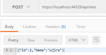 现在我们给 TestController 应用 [ApiController] 特性,同时删掉 Action 上的 [FromBody] 特性: