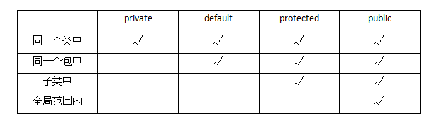 那么,如何实现java的封装呢?首先来看一下java的访问控制级别:
