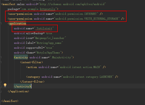 1 <uses-permission android:name="android.permission.INTERNET" />2 <uses-permission android:name="android.permission.WRITE_EXTERNAL_STORAGE" />