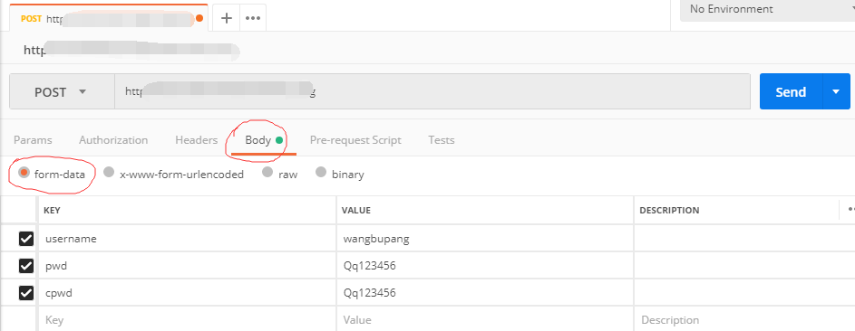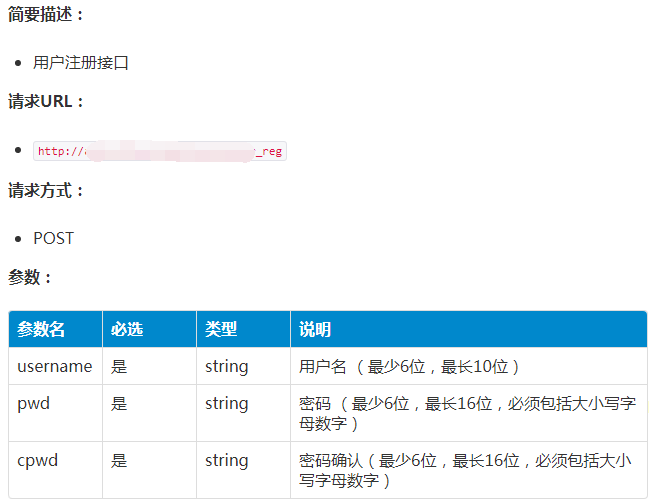 3:参数username,pwd,cpwd(注意参数的格式和说明)