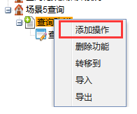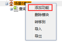 4..如上图,在我定义的“场景5查询”中右键添加功能,保存,这样就定义好了功能。