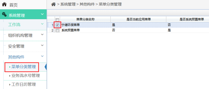 6.如上图,接着我们需要定义菜单分类管理,点击宁德环保菜单,进入进去。
