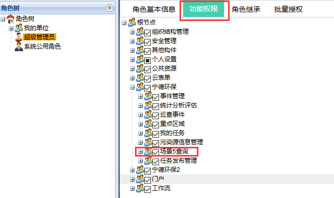 10.如上图,重点要够选择我们之前设置好的“场景5查询”的功能模块,点击保存。