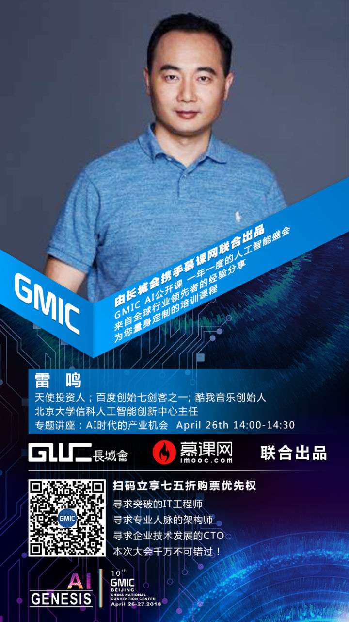 GMIC2018人工智能公开课,将为您呈现无与伦比的AI盛宴,4月26日,慕课网期待与您相会!