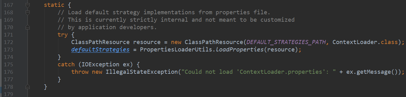 进入ContextLoaderListener,打开其父类ContextLoader,经常用SpringMVC开发的人应该对ClassPathResource比较熟悉,ClassPathResource经常被我们用来读取资源文件