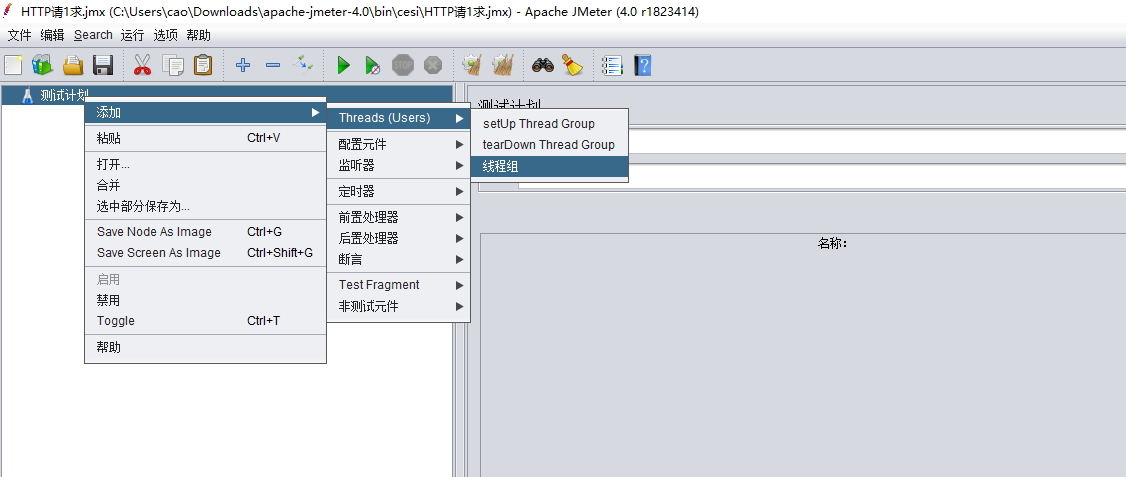 测试计划-->添加-->Threads-->线程组