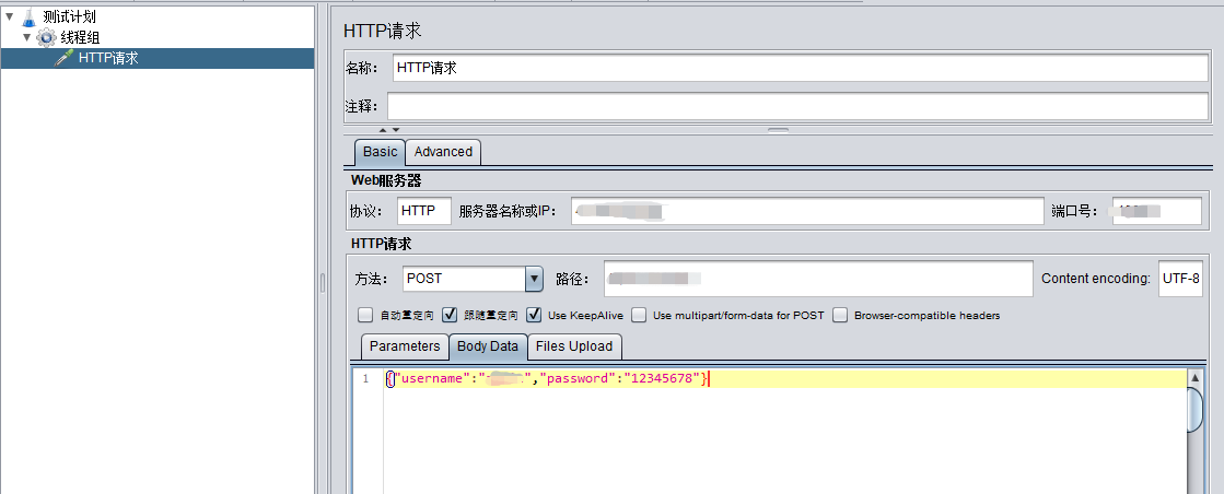 (11)Parameters、Body Data以及Files Upload :具体使用哪一个,主要取决于在HTTP信息头管理器中Content-Type设置的什么类型