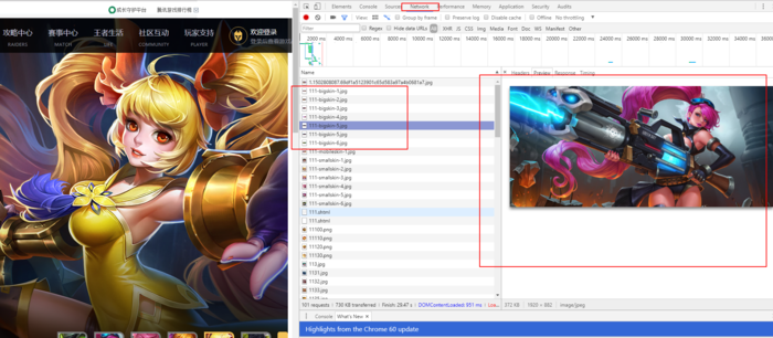 分析一下这个链接,其中“111”是英雄的编号,最后的“1”是该英雄的皮肤编号。到此为止,浏览器已经没有用了,该得到的信息我们都有了。