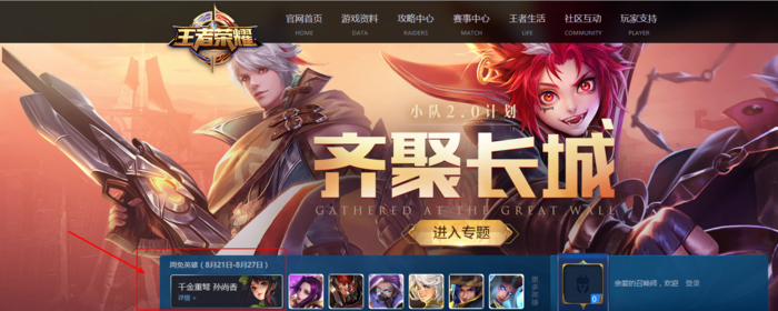 点击首页的“游戏资料”标签页,进入新的界面后点击一个英雄头像进入英雄资料界面,此处我们以孙尚香为例: