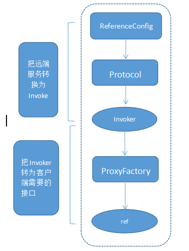 首先ReferenceConfig类的init方法调用Protocol的refer方法生成Invoker实例。接下来把Invoker转为客户端需要的接口