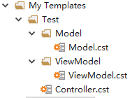 首先仿照上例新建了几个模板,例如生成Controller的、ViewModel的,目录结构如下:
