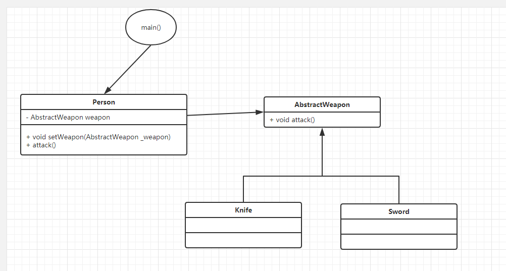 public Person(AbstractWeapon weapon) { this.weapon = weapon;//初始化给一把武器 } //发起攻击