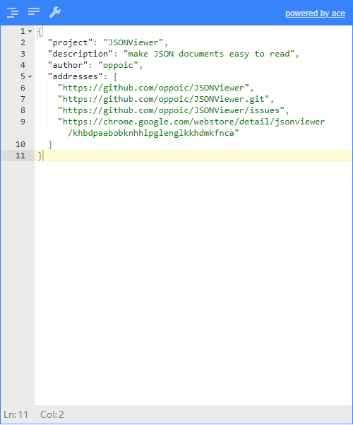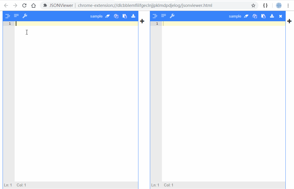 既然国内的JSON格式化网站没法抄了,就到国外找找,Google上搜索JSON Formatter,前几个网站界面都不一样,但是用的都是 看下对应的代码 非常简洁,这个editor还自带json格式化、压缩和去除转义的功能,无需自己实现。为了方便布局,用下Bootstrap的栅栏模式,看看多个editor在一起的效果 对应的代码是 View Code 到这里又该疑惑了:一个页面到底放几个editor合适。最终决定根据浏览器窗口宽度动态控制个数 如果用户的显示器是5k的,那么放6个editor,一个页面同时显示6段JSON,基本够用了。如果不够再开一个标签页,就是12个了。 调用destroy方法之前必须得有editor对象,所以初始化的时候就给存起来 之后每次删除和增加editor都必须维护这个jsonEditorArr数组 至此功能就差不多了,继续为这个插件加一些常用功能 复制editor里的JSON到剪切板,再去别的地方粘贴出来结构不乱。使用的是clipboard-polyfill这个库,不需要初始化和销毁对象等操作,直接调用api无脑copy即可,省事省心。示例代码 别的地方复制的JSON,到这里不需要右键然后粘贴了,直接点粘贴按钮即可,每次操作省一次鼠标右击。同样借助了clipboard-polyfill这个库。示例代码 保存JSON到本地,省的复制全部,然后到本地新建txt粘贴保存了。使用了 至此,功能就都完成了,来看看最终的效果图 用到了如上库,感谢无私分享 GitHub:https://github.com/oppoic/JSONViewer/ Chrome web store:https://chrome.google.com/webstore/detail/jsonviewer/khbdpaabobknhhlpglenglkkhdmkfnca crx文件:https://github.com/oppoic/JSONViewer/raw/master/crx/JSONViewer.crx 注: 1)crx文件安装方式:打开Chrome浏览器 - 更多工具 - 扩展程序,把crx文件拖进来 2)GitHub源码安装方式:下载源码,打开Chrome浏览器 - 更多工具 - 扩展程序,打开“开发者模式” - 加载已解压的扩展程序 - 选择源码的src目录 - 确定 本插件完全是前端实现,可以双击html页面运行,也可以发布到服务器上。做成谷歌浏览器插件完全是为了方便:每次需要格式化JSON就点谷歌浏览器右上角的插件图标即可。 想要运行HTML页面的到源码包里找这个文件:JSONViewer\test\jsonviewer-test2.html 本文地址:https://www.cnblogs.com/oppoic/p/10444012.html<!DOCTYPE html><html lang="en"><head>