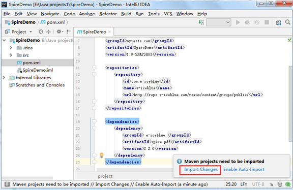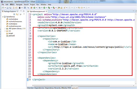 其次,在pom.xml文件中指定Spire.PDF for Java的Maven依赖