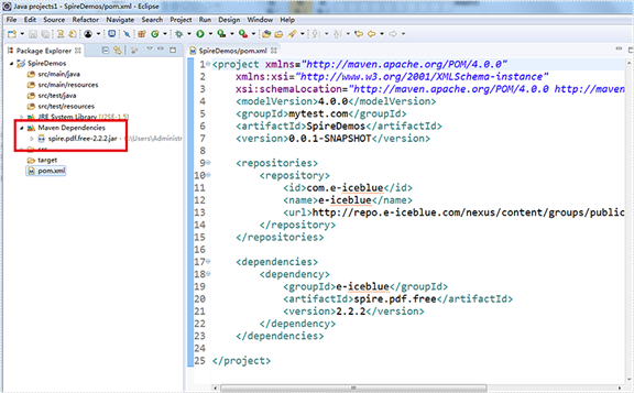 至此,在Maven项目中已成功添加了Spire.PDF JAR包依赖。