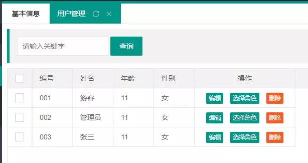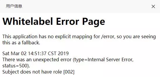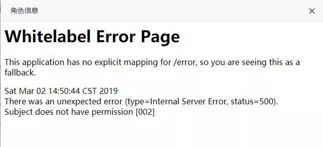这里做了一个非常丑的登录页面,主要是自己懒,不想在网上复制粘贴找登录页面了。 在LoginController中通过登录名、密码获取到token实现登录。 这里在用户页面点击编辑按钮时设置需要有id=002的角色,在点击选择角色按钮时需要有code=002的权限。 当使用用户001登录时,点击编辑,弹出框如下,提示没有002的角色 点击选择角色按钮时提示没有002的权限。 当使用用户002登录时,点击编辑按钮,显示正常,点击选择角色也是提示没002的权限,因为权限只有001。 这里使用shiro:hasAnyRoles="002,003"判断用户角色是否是002或003,是则显示不是则不显示。 当001用户登录时,添加用户、批量删除按钮都不显示,只显示查询按钮。 当002用户登录时,添加用户、批量删除按钮都显示 这里只是实现了Shiro的简单的功能,Shiro还有很多很强大的功能,比如session管理等,而且目前权限管理模块还有很多需要优化的功能,左侧导航栏的动态加载和权限控制、Shiro与Redis结合实现session共享、Shiro与Cas结合实现单点登录等。 作者:chen_haopackage com.example.config;