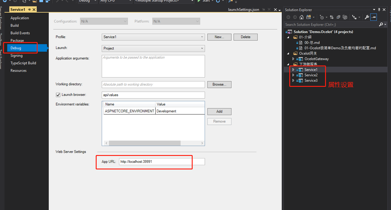 1. 新建3个asp.net core webapi项目,分别命名为Service1,Service2,Service3