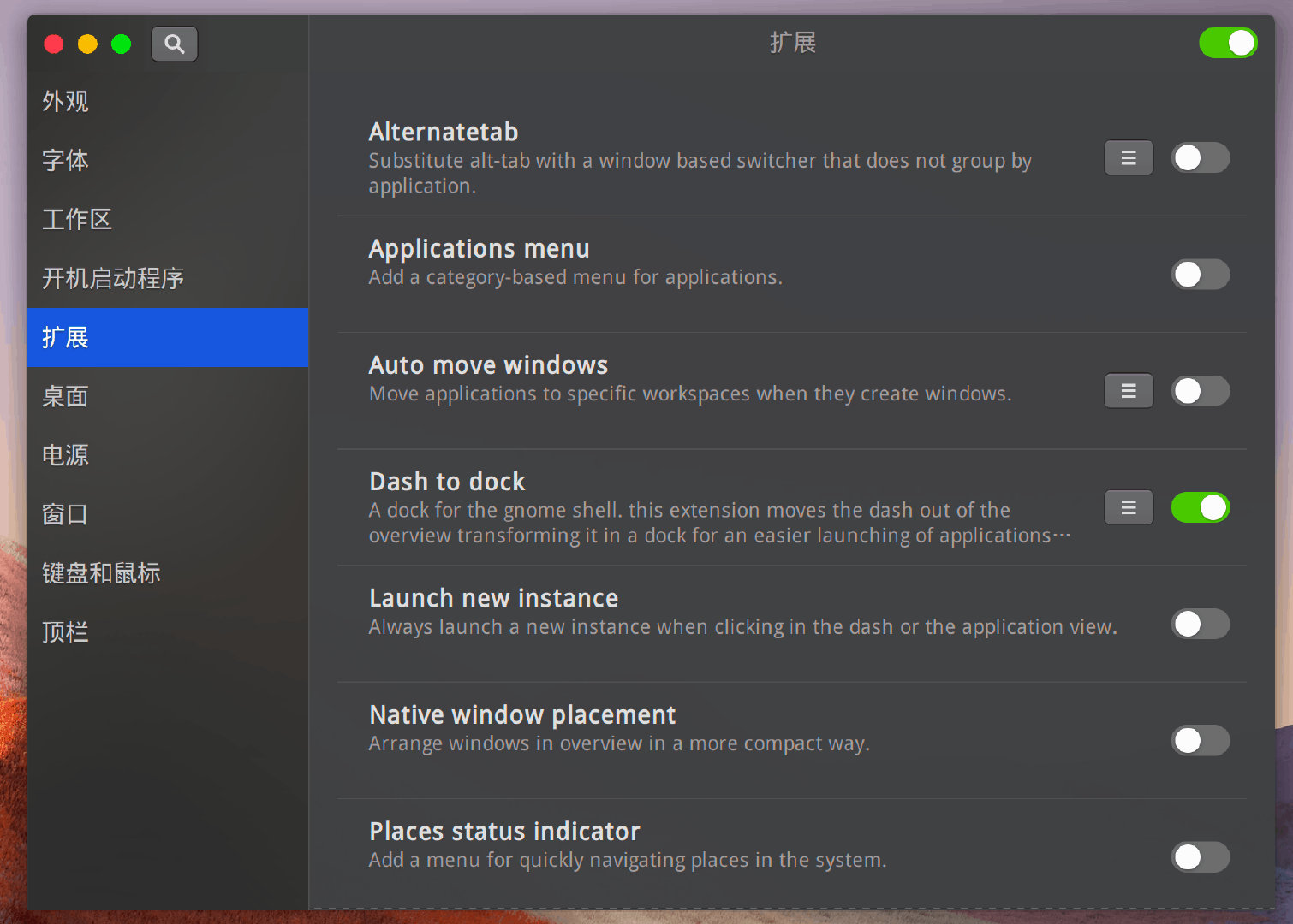 同样, 先要安装美化管理工具gnome-tweak-tool. 界面如下展示: