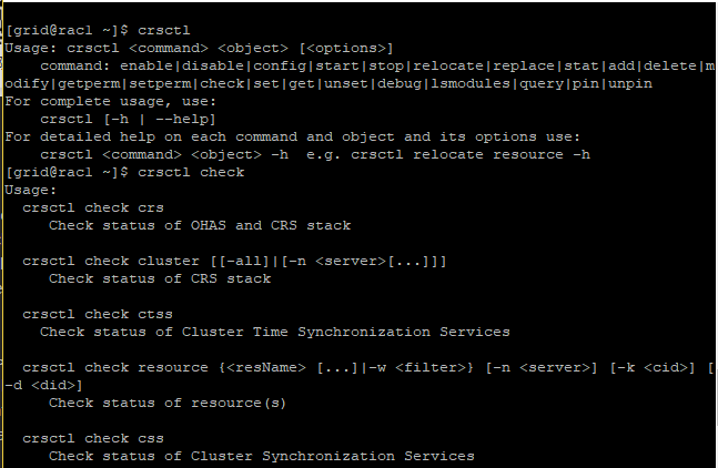对于crsctl命令不清楚的,在终端输入crsctl,他会有命令的介绍及补充,很直观详细的。