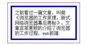 如上图,得到网页效果之后,我们可以用截图工具来量一下文字内容的宽度。发现,文字内容的宽度刚好是 300px,也就是我们设置的宽度。