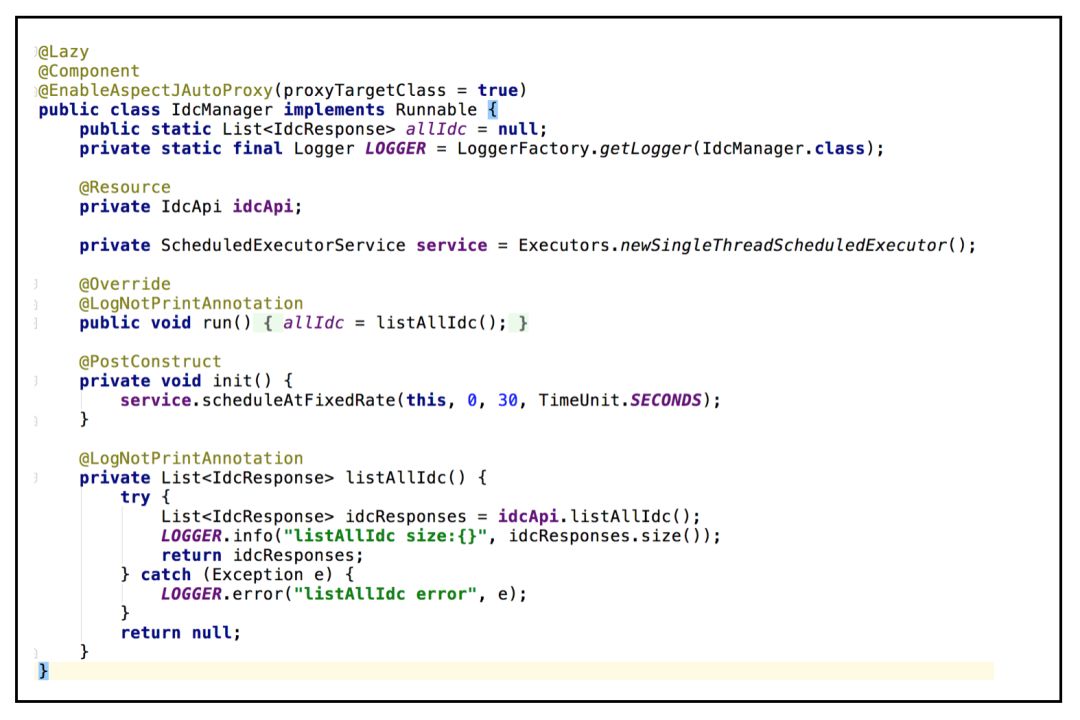 程序中需要用thrift(RPC调用)请求基础服务取所有的机房信息。