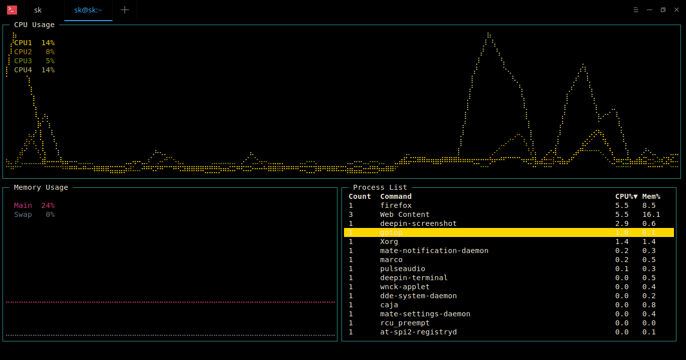 Gotop 的使用非常简单!你所要做的就是从终端运行以下命令。