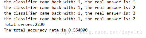 def file2mat(test_filename, para_num): """ 将表格存入矩阵,test_filename为表格路径,para_num为存入矩阵的列数 返回目标矩阵,和矩阵每一行数据的类别 """ fr = open(test_filename) lines = fr.readlines() line_nums = len(lines) result_mat = np.zeros((line_nums, para_num)) # 创建line_nums行,para_num列的矩阵 class_label = [] for i in range(line_nums): line = lines[i].strip() item_mat = line.split(',') result_mat[i, :] = item_mat[0: para_num] class_label.append(item_mat[-1]) # 表格中最后一列正常1异常2的分类存入class_label fr.close() return result_mat, class_labeldef roc(data_set): normal = 0 data_set_size = data_set.shape[1] roc_rate = np.zeros((2, data_set_size)) for i in range(data_set_size): if data_set[2][i] == 1: normal += 1 abnormal = data_set_size - normal max_dis = data_set[1].max() for j in range(1000): threshold = max_dis / 1000 * j normal1 = 0 abnormal1 = 0 for k in range(data_set_size): if data_set[1][k] > threshold and data_set[2][k] == 1: normal1 += 1 if data_set[1][k] > threshold and data_set[2][k] == 2: abnormal1 += 1 roc_rate[0][j] = normal1 / normal # 阈值以上正常点/全体正常的点 roc_rate[1][j] = abnormal1 / abnormal # 阈值以上异常点/全体异常点 return roc_ratedef test(training_filename, test_filename): training_mat, training_label = file2mat(training_filename, 32) test_mat, test_label = file2mat(test_filename, 32) test_size = test_mat.shape[0] errorcount=0.0 for i in range(test_size): classifierResult = classify(test_mat[i], training_mat) print("the classifier came back with: %d, the real answer is: %d" % (int(classifierResult), int(test_label[i]))) if (int(classifierResult) != int(test_label[i])): errorcount += 1.0 print("Total errors:%d" % errorcount) #计算错误数 print("The total accuracy rate is %f" % (1.0 - errorcount/float(test_size)))if __name__ == "__main__": test('training.csv', 'test.csv')