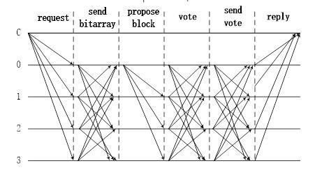对于每个副本Ni,它接收sv0,sv1,...,svn。对于0≤j≤n,它首先使用sign(svj,Nj)和Nj的公钥来检查svj的一致性。然后,计算B的同意的数量。如果同意的数量超过2n / 3,Ni回复agree给调用者。请注意,如果svj中的vbk与svl不同,对于j ≠ l,Nk是恶意副本。