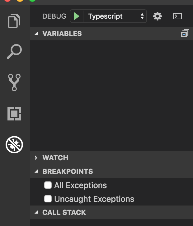| 1234567891011121314151617 | { // Use IntelliSense to learn about possible attributes. // Hover to view descriptions of existing attributes. // For more information, visit: https://go.microsoft.com/fwlink/?linkid=830387 "version": "0.2.0", "configurations": [ { "type": "node", "request": "launch", "name": "TypeScript", "program": "${workspaceFolder}\\app.ts", "outFiles": [ "${workspaceFolder}/**/*.js" ] } ]} |