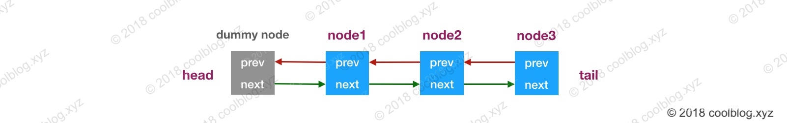 每个阻塞的线程都会被封装成节点对象,节点之间通过 prev 和 next 指针形成同步队列。初始情况下,队列的头结点是一个虚拟节点。该节点仅是一个占位符,没什么特别的意义。每当有一个线程调用 countDown 方法,就将计数器 state--。当 state 被减至0时,队列中的节点就会按照 FIFO 顺序被唤醒,被阻塞的线程即可恢复运行。