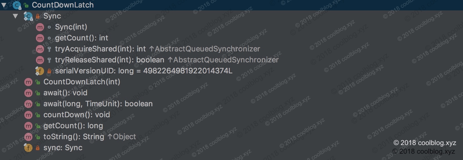 CountDownLatch 的代码量不大,加上注释也不过300多行,所以它的代码结构也会比较简单。如下: