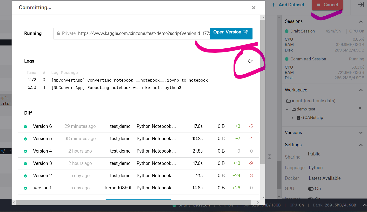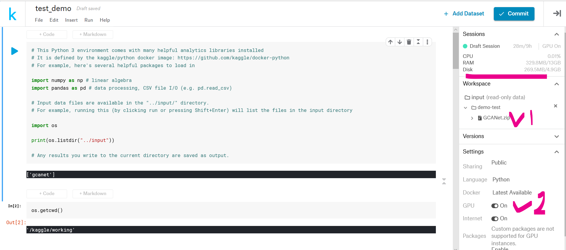 - 上传需要训练的模型与数据(以 ZIP 的形式):https://www.kaggle.com/xinzone/demotest
