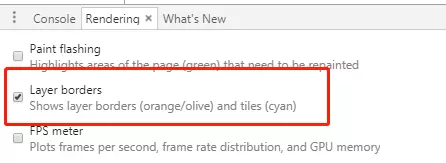 上面的那句话应该已经可以作为结论,我再使用 chrome 提供的工具验证一下,打开开发者工具的 Rendering -> Layer borders: