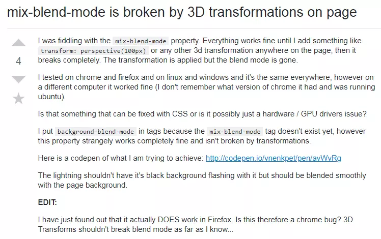 这就很蹊跷了,预想中的混合并没有发生,取而代之的是 3D 的失效。我想,也许与内核有关,上面的效果是在 chrome 65.0.3325.181 试验得到的。