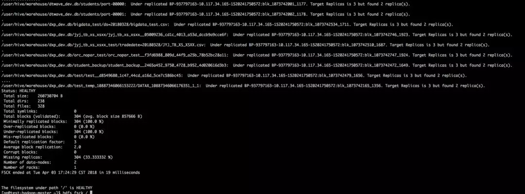 数据块列表获取。查看数据块的健康状态:hdfs fsck / -files -block或者hdfs fsck /
