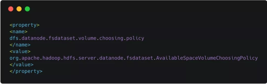 如果不配置,默认使用第一种方式,既轮询选择磁盘来存储数据副本,但是轮询的方式虽然能够保证所有磁盘都能够被使用,但是经常会出现各个磁盘直接数据存储不均衡问题,有的磁盘存储得很满了,而有的磁盘可能还有很多存储空间没有得到利用,所有在hadoop2.0集群中,最好将磁盘选择策略配置成第二种,根据磁盘空间剩余量来选择磁盘存储数据副本,这样一样能保证所有磁盘都能得到利用,还能保证所有磁盘都被利用均衡。