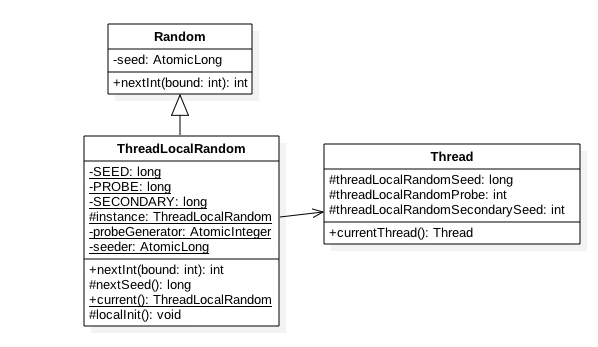 static final ThreadLocalRandom instance = new ThreadLocalRandom(); public static ThreadLocalRandom current() { //(12)