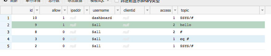 insert `mqtt_acl`(`allow`,`username`,`access`,`topic`) values(1,'$all',1,'/$user/get');insert `mqtt_acl`(`allow`,`username`,`access`,`topic`) values(1,'$all',2,'/$user/set');
