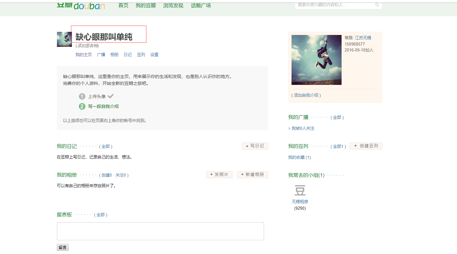 为了能让大家更好的理解这两种方式的运用,我以获取豆瓣个人主页昵称为例,分别用这两种方式来获取需要登陆后才能看到的信息。获取信息如下图所示: