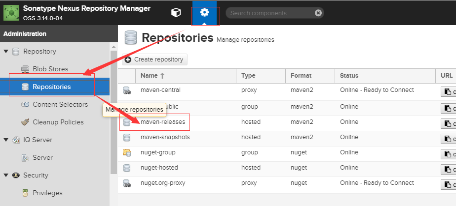 在web界面点开 - Hosted:私有仓库,专门用来存储我们自己生成的jar文件