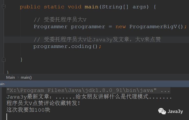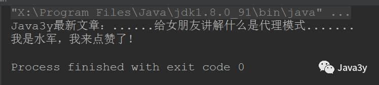 System.out.println("Java3y最新文章:......给女朋友讲解什么是代理模式.......");