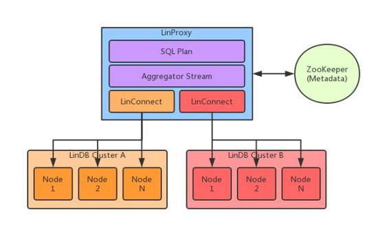 LinProxy主要做一些SQL的解析,及一些中间结合的再聚合计算,如果不是跨集,LinProxy可以不需要,对于单集的每个节点都内嵌了一个LinProxy来提供查询服务;
