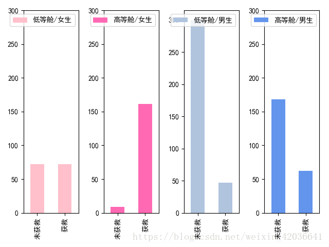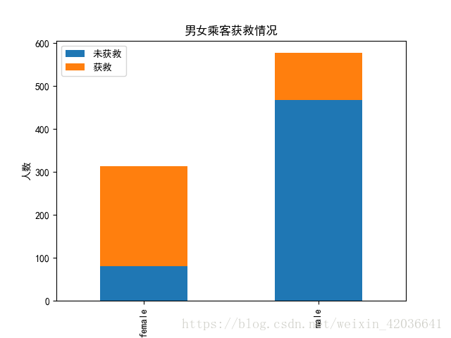 # df2=pd.DataFrame({'获救':survived_1_one,'未获救':survived_0_one})